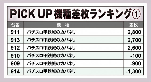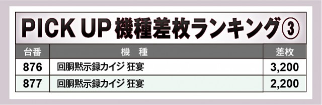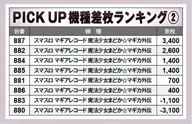 『パチスロ甲鉄城のカバネリ』『スマスロ マギアレコード 魔法少女まどか☆マギカ外伝』は半数以上でプラス差枚数を築いており、その存在をアピールしていた。特に前者は現役のメダル機ということもあり、ファンも嬉々としてレバーを叩いていたはずだ。また『回胴黙示録カイジ 狂宴』は全台プラス差枚数を達成しており、優秀機種の名に恥じない活躍をしていたと言えるだろう。