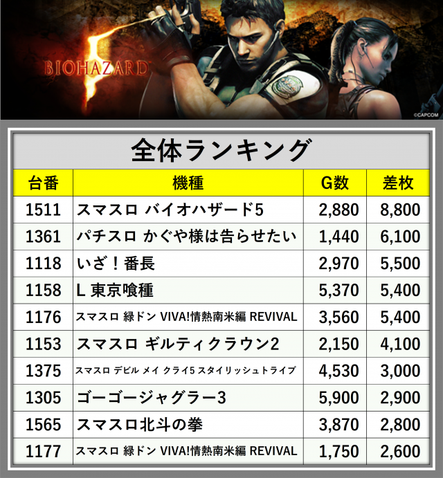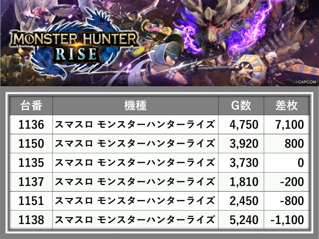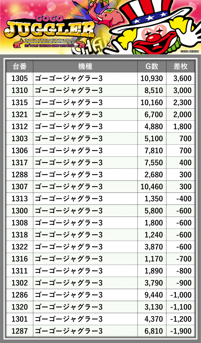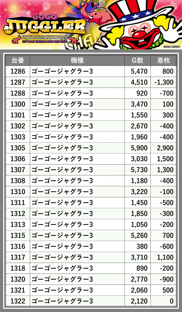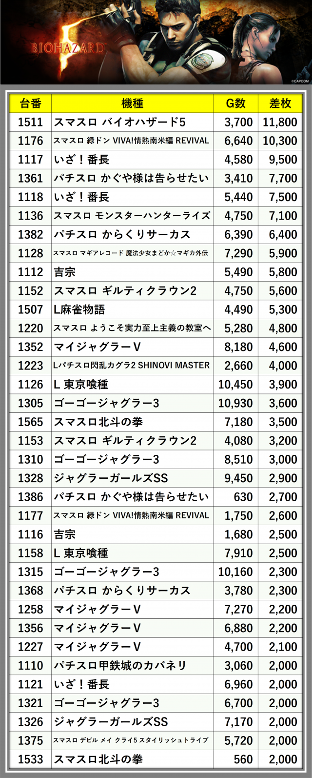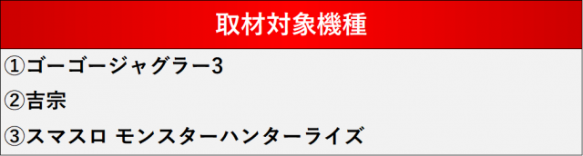 厳選された取材対象機種をはじめ、その他スロット全体から好記録が飛び出した!プレイヤーが楽しんだ1日を下記データにて振り返ってみて欲しい。