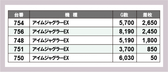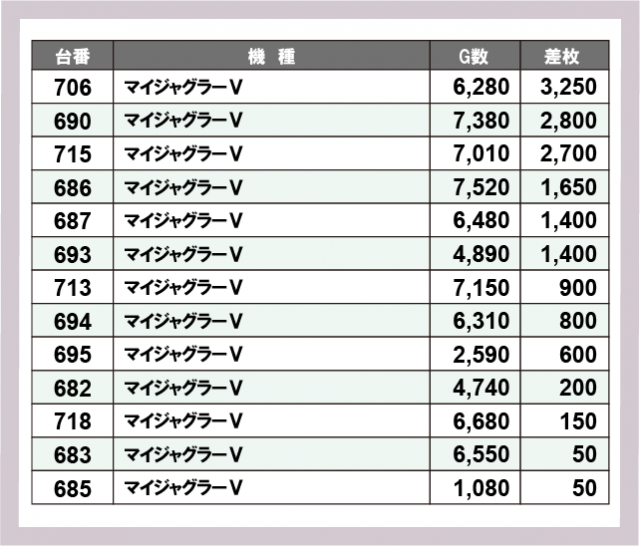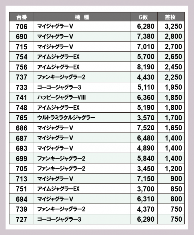 ジャグラー差枚ランキング