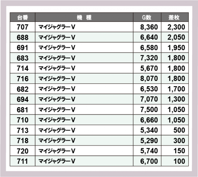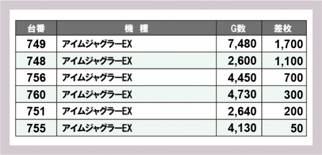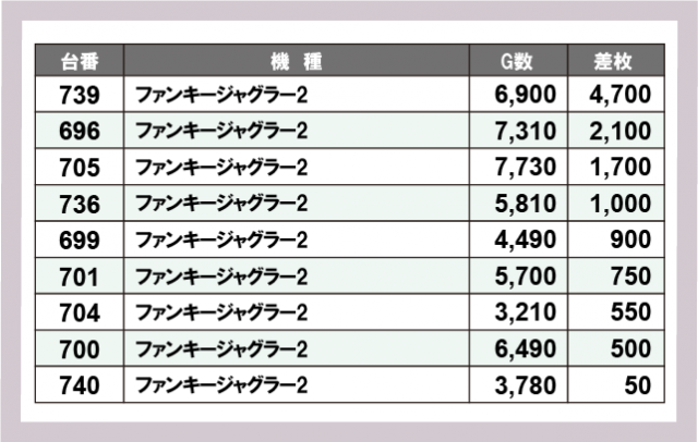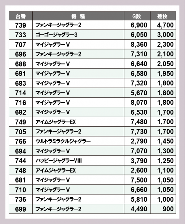 ジャグラー差枚ランキング