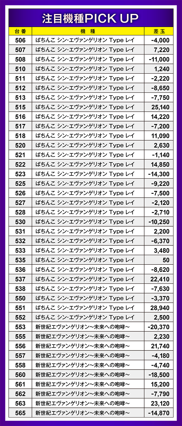 今回は『エヴァンゲリオン』シリーズの結果に着目。前回調査した『海』シリーズは10,000玉を超える結果が少なめだったが、『エヴァ』コーナーからは計9台の10,000玉超えレコードが飛び出した!やはり『エヴァ』シリーズは強い!