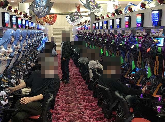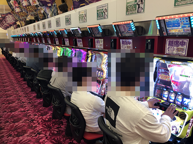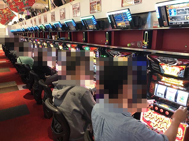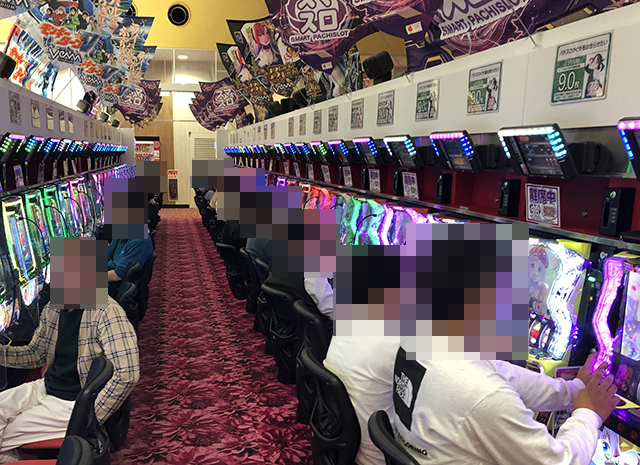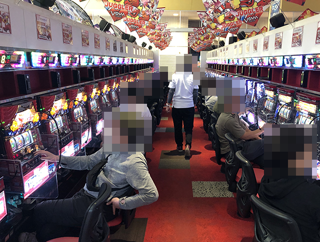 「キングハナハナ-30」や「マイジャグラーⅤ」などで、プレイヤーたちは楽しそうに過ごしていた。