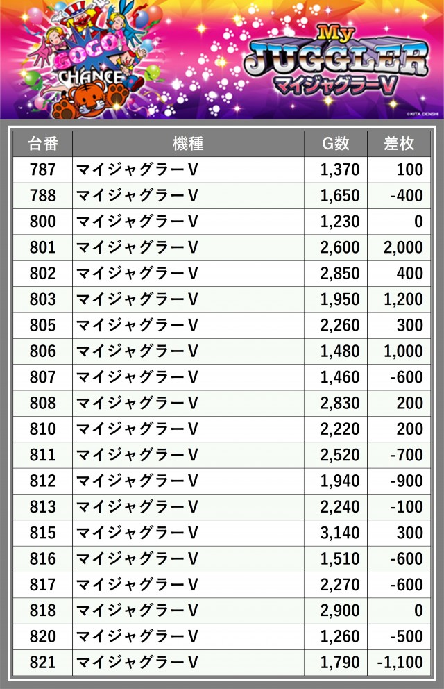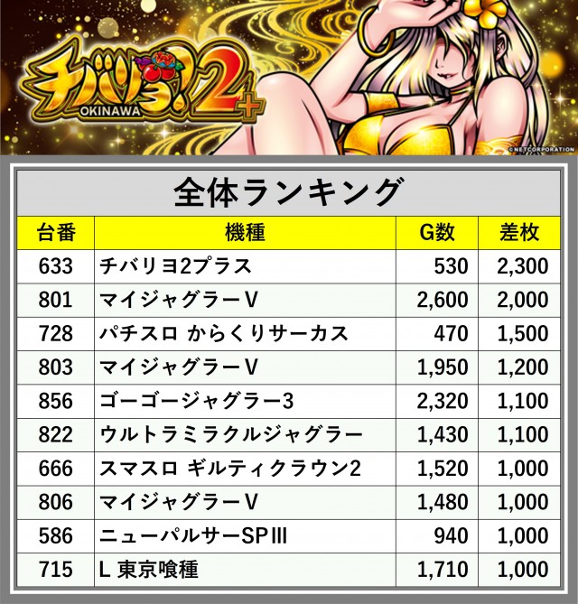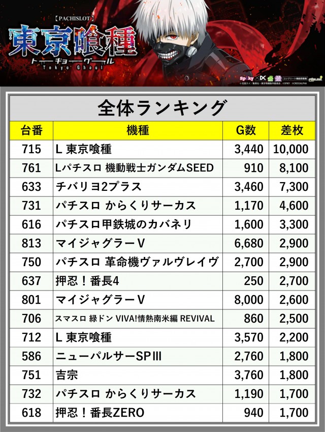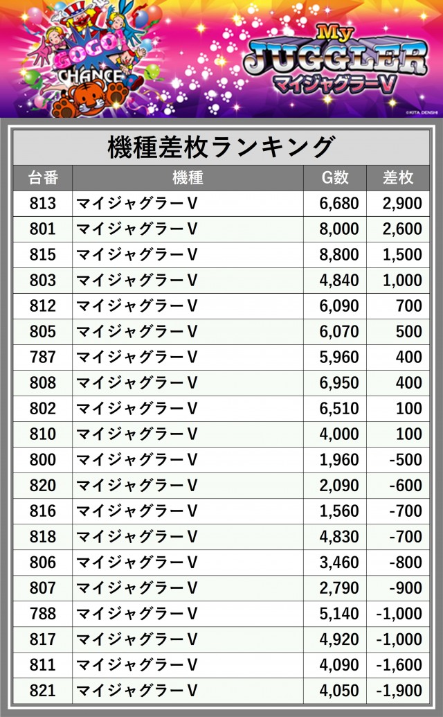 ※差枚数順に掲載しています