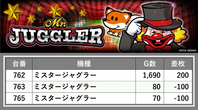 厳選された取材対象機種をはじめ、その他スロット全体から好記録が飛び出した!プレイヤーが楽しんだ1日を下記データにて振り返ってみて欲しい。