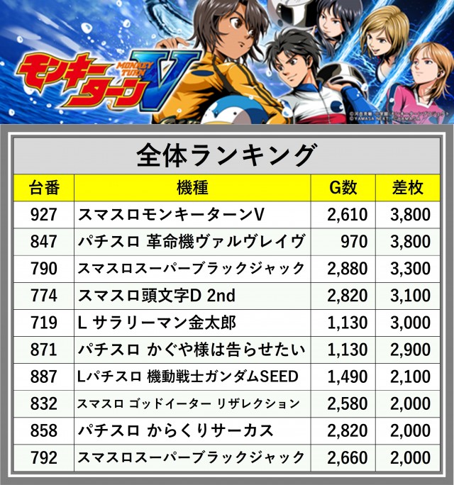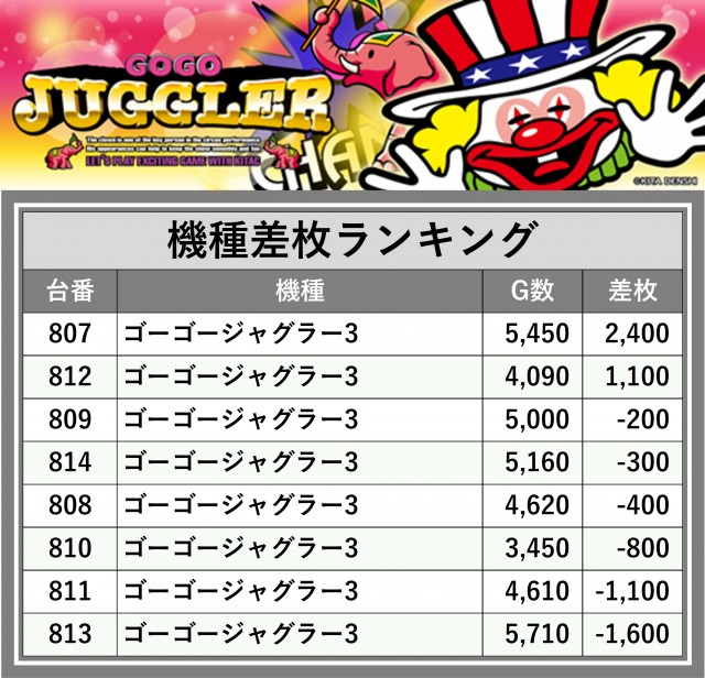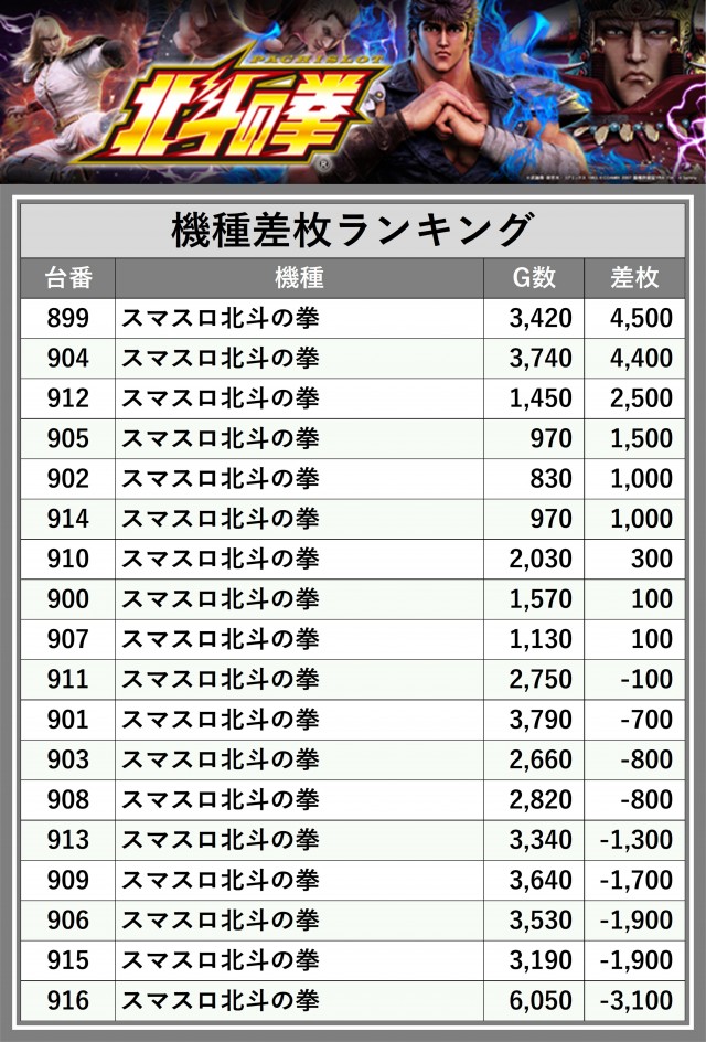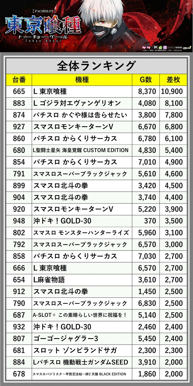 ※差枚数順に掲載しています