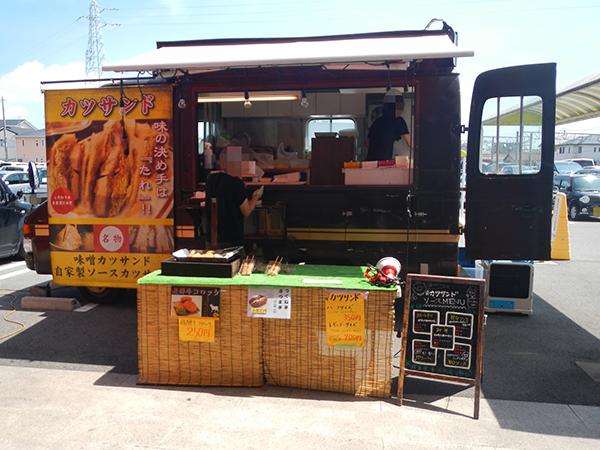 取材日の駐車場では、名物のカツサンドを販売。休憩時間や遊技後のおやつとして利用するのもアリだろう。
