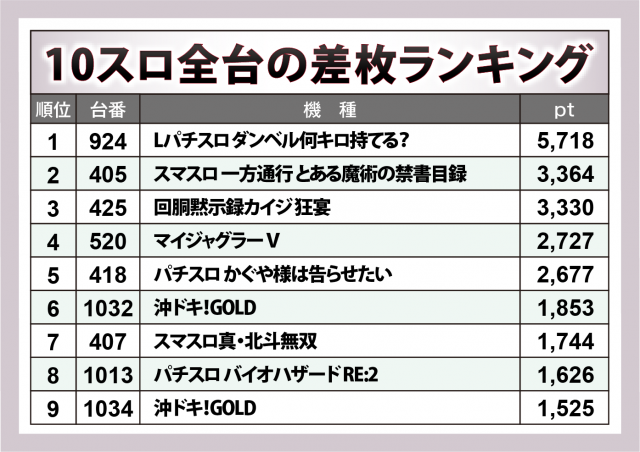 ※差枚数順に掲載しています。