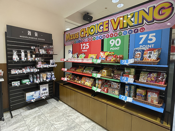 景品コーナーにはたくさんのお菓子や日用品が用意されており、プレイヤーから好評だった。