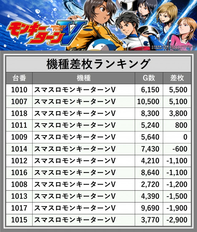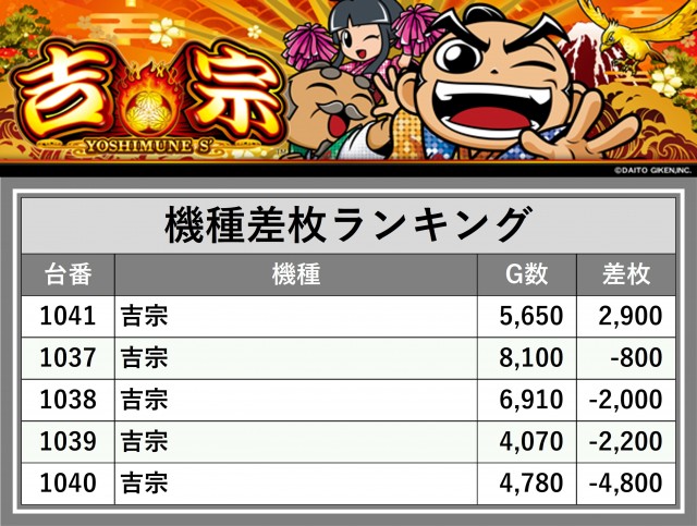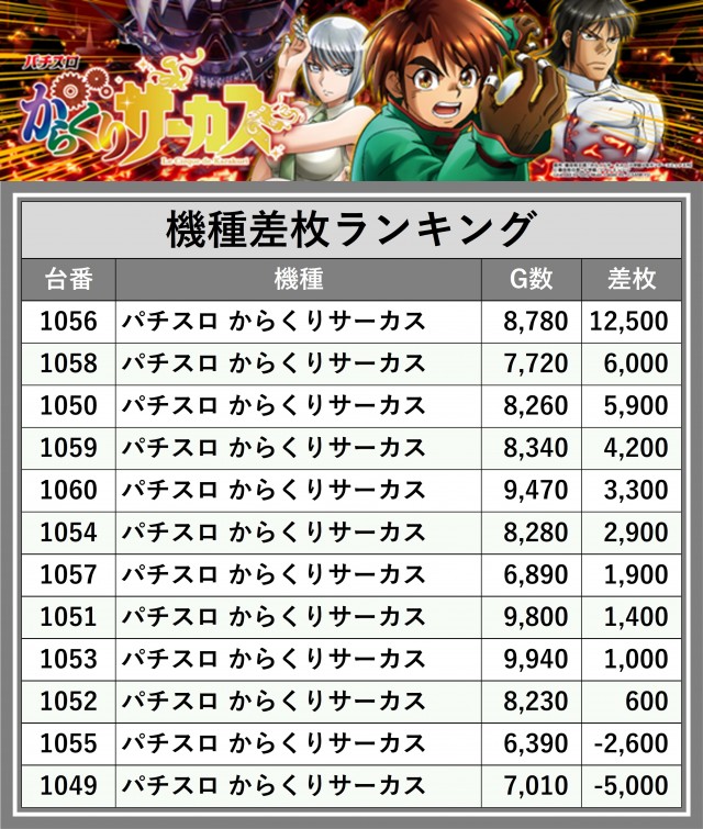 ※差枚数順に掲載しています