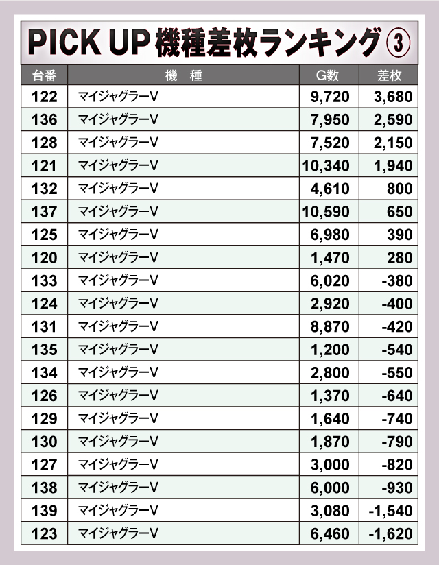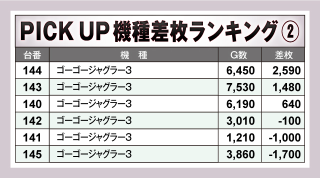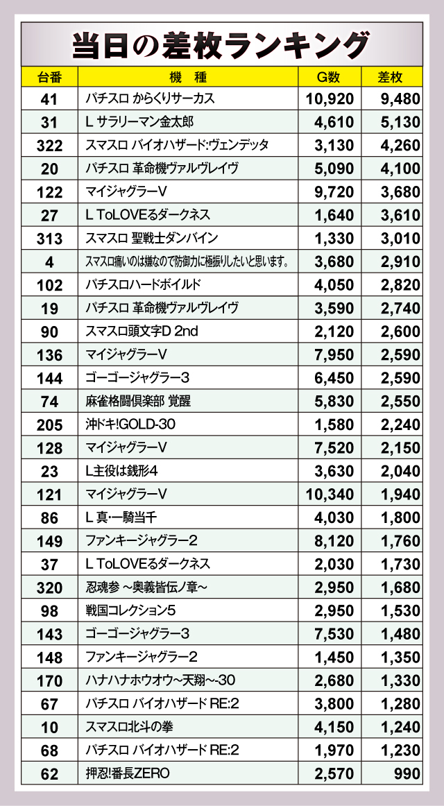 ※差枚数順に掲載しています。