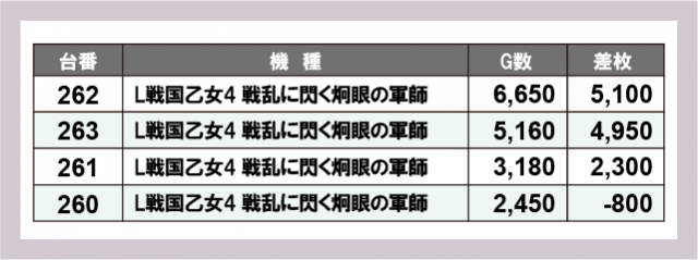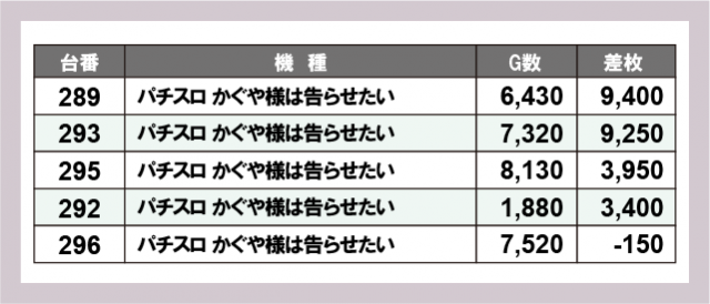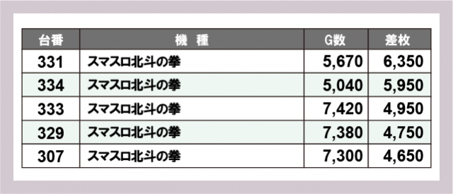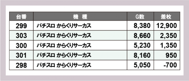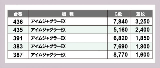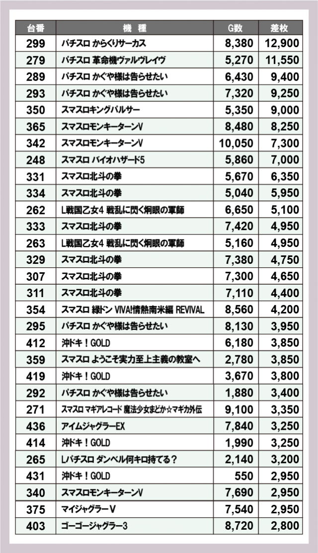 ※差枚数順に掲載しています