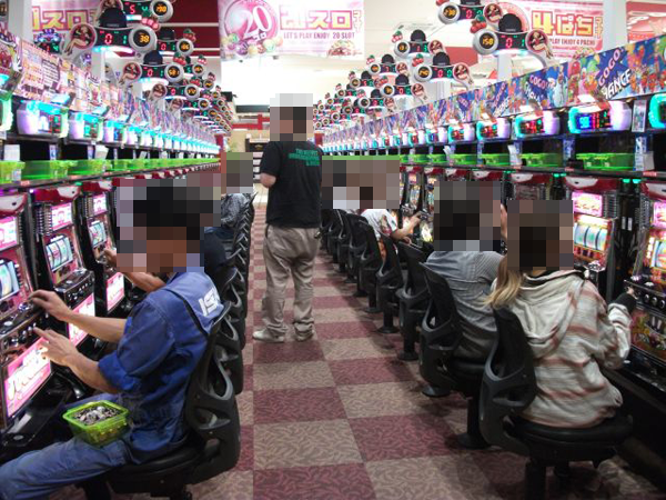 お昼を過ぎる頃になると、とくに1円パチンコにプレイヤーの姿が多くみられ、取材中は常にほぼ満席といった状況。定番の海物語シリーズはもちろん、「CRヱヴァンゲリヲン9」や「CR麻雀物語2〜めざせ!雀ドル決定戦!〜」などの新台、人気機種が充実しているというのも支持されている理由の1つなのだろう。