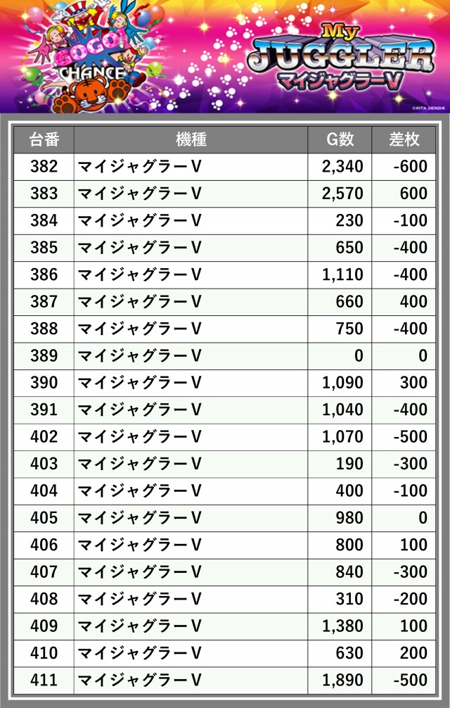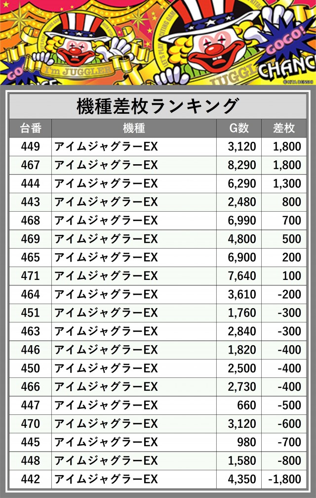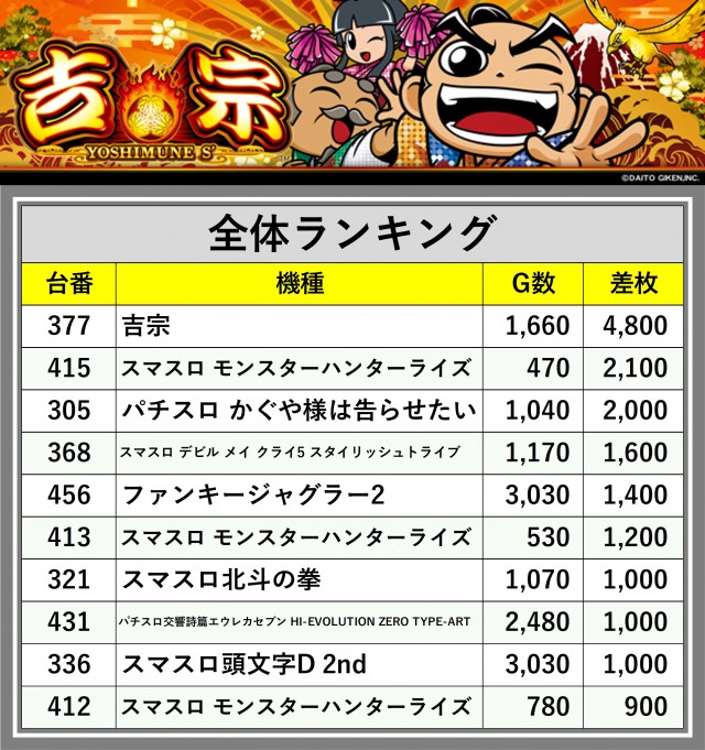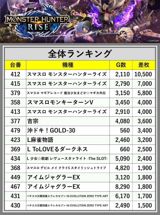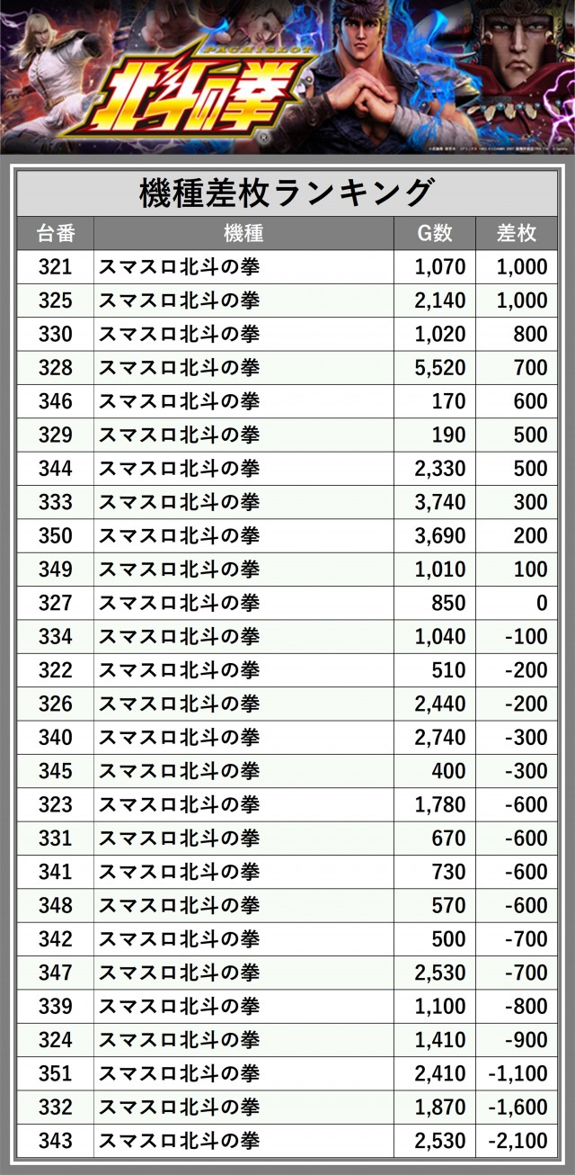 ※差枚数順に掲載しています