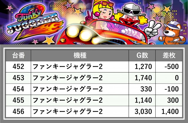 厳選された取材対象機種をはじめ、その他スロット全体から好記録が飛び出した!プレイヤーが楽しんだ1日を下記データにて振り返ってみて欲しい。