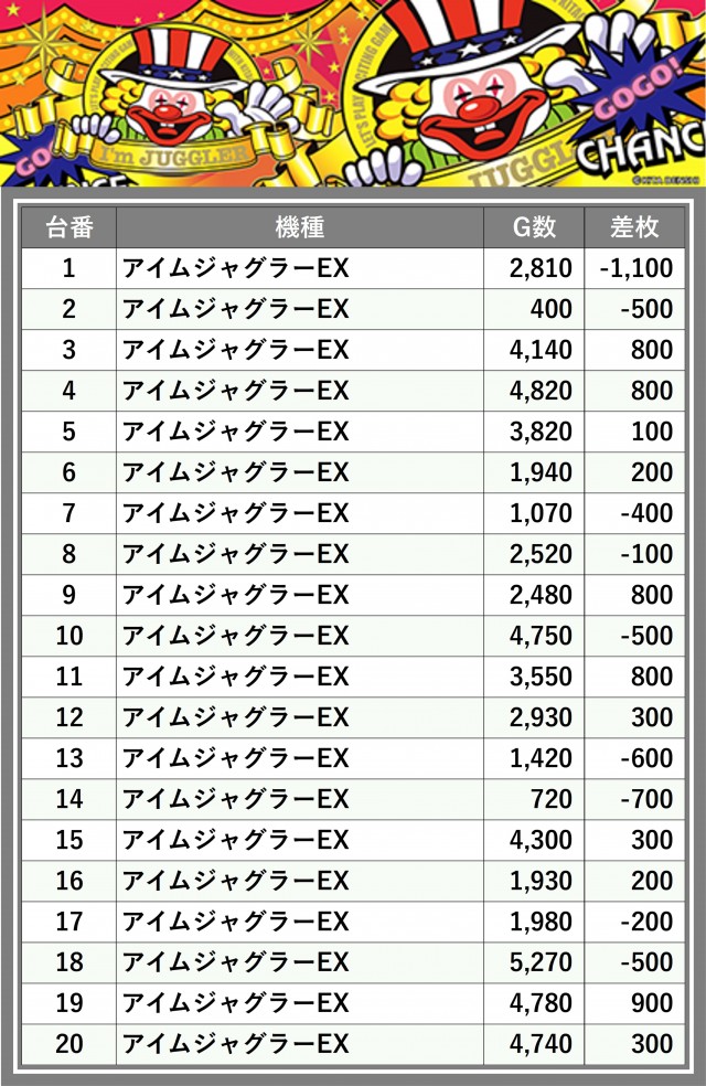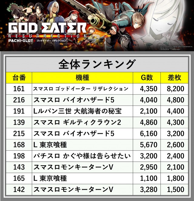 厳選された取材対象機種をはじめ、その他スロット全体から好記録が飛び出した!プレイヤーが楽しんだ1日を下記データにて振り返ってみて欲しい。