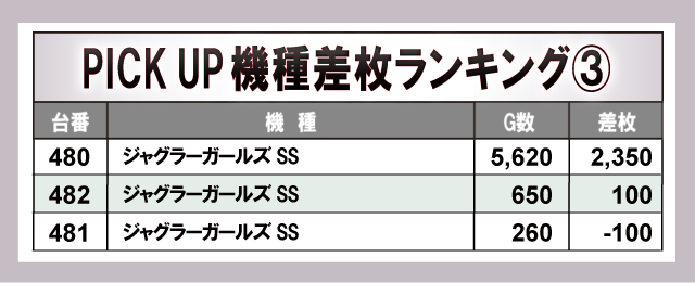 『マイジャグラーⅤ』『沖ドキ!BLACK』『ジャグラーガールズSS』といったメダル機から4桁プラス台発生というポテンシャルを秘めた内容となり、大いに盛り上がりを見せていた。