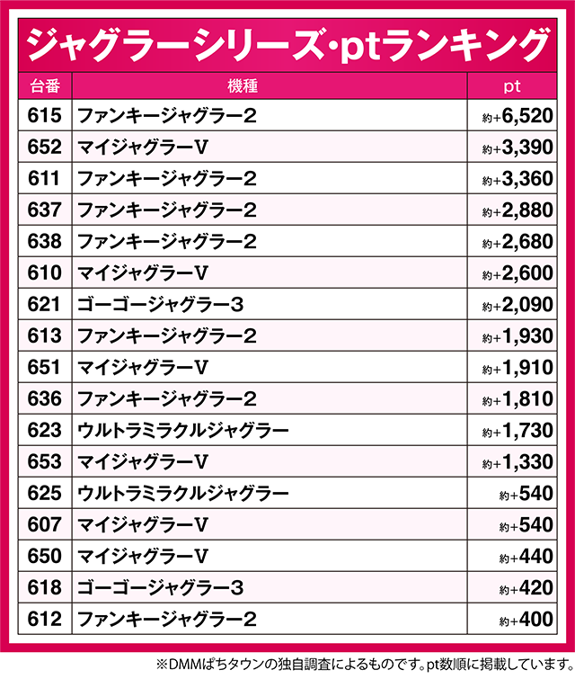 「ファンキージャグラー2」の615番台が約+6,520pt!!