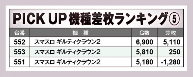 6月の新台『いざ!番長』『スマスロ ギルティクラウン2』がさっそく活躍しており、両機種とも5,000枚OVERと気を吐いていたのが印象的だ。またしっかりと打ち込まれた形跡も見られ、ファンは手応えを感じていたに違いない。そして既存の機種である『L サラリーマン金太郎』『吉宗』『Lパチスロ ダンベル何キロ持てる?』も大台突破を果たしており、大きな存在感を放っていたと言えよう。