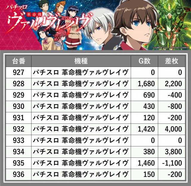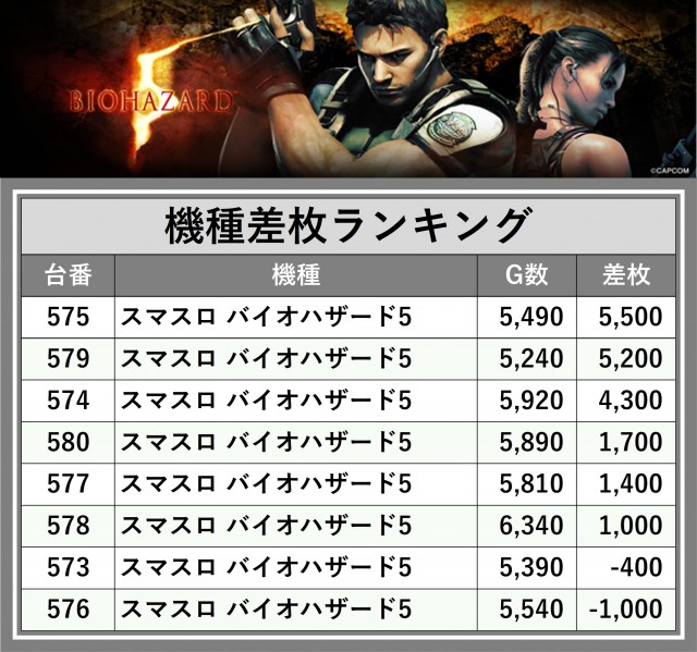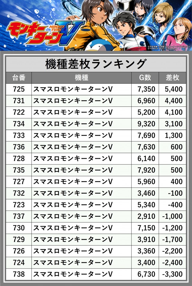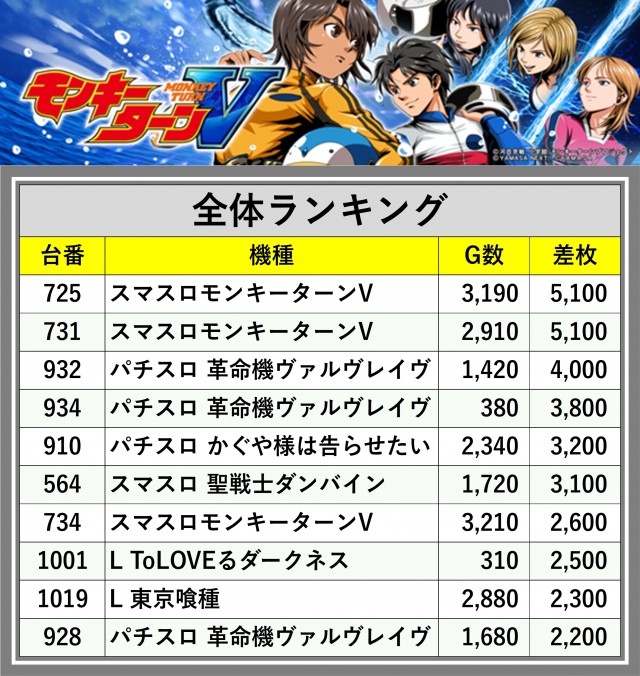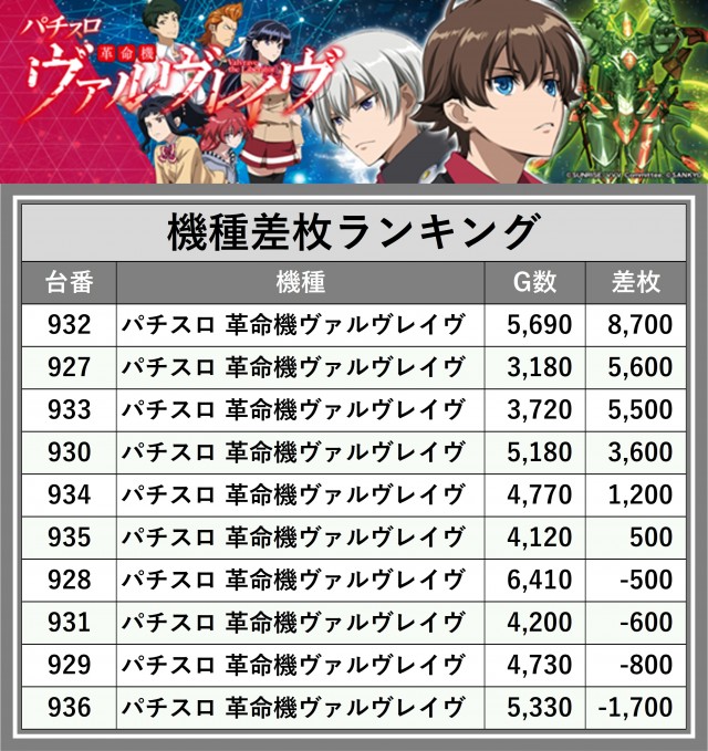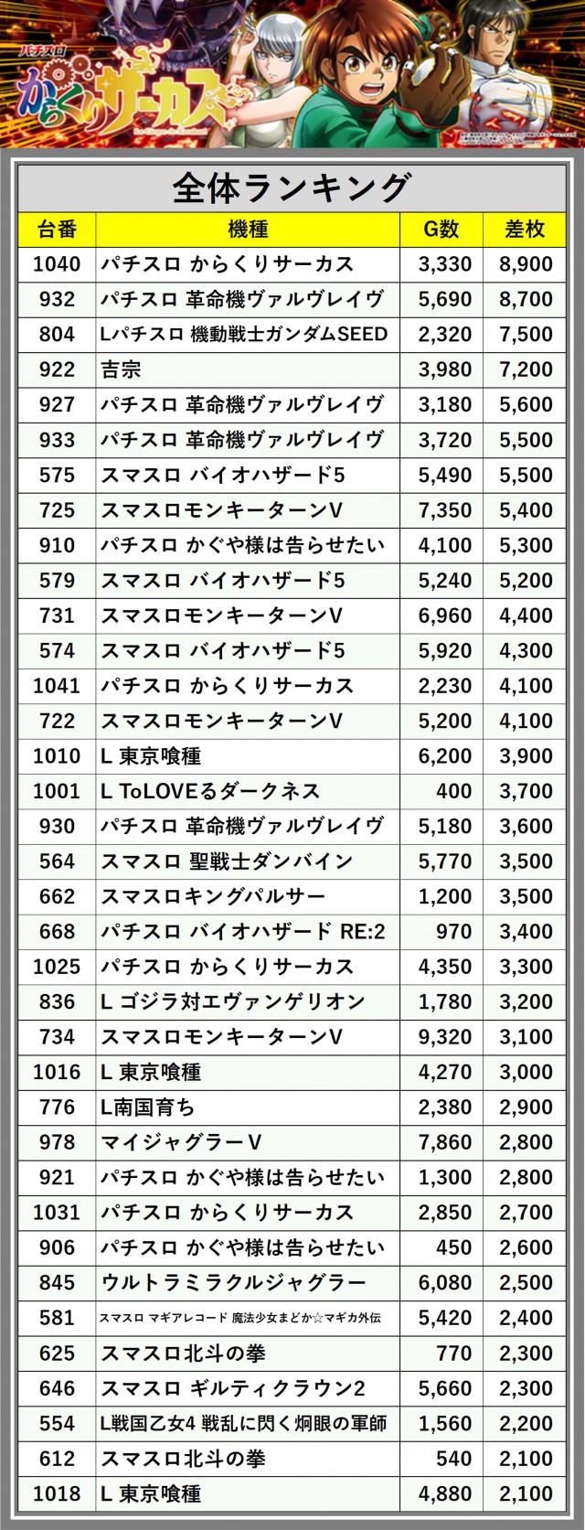※差枚数順に掲載しています