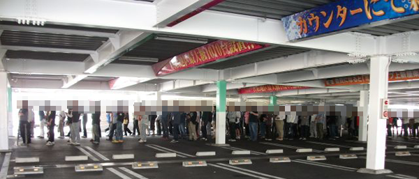 朝イチは来店順に入場となっており、90人ほどのプレイヤーが並んだ。大きく信頼されている「楽園上新屋店」がどのようなREALな状況をみせてくれるのか、朝イチから楽しみであった。
