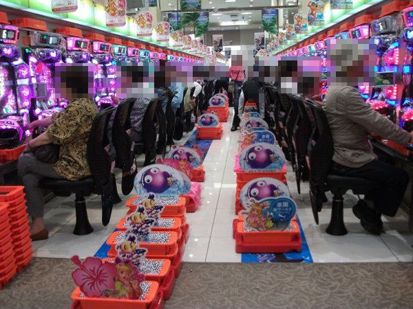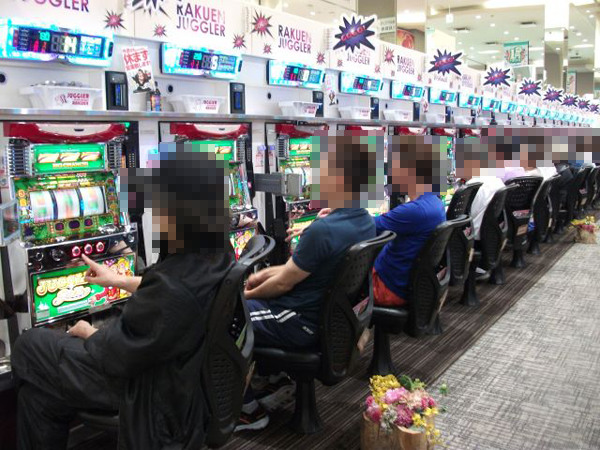 ジャグラーシリーズでは「ジャグラーガールズ」や「ニューアイムジャグラーEX」がとくにたくさんのプレイヤーを集めており、老若男女を問わずさまざまなプレイヤーが遊技を楽しんでいた。