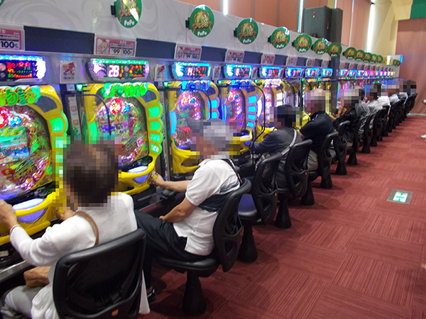 4円ではもちろんのこと、空き台が見当たらないほどの盛り上がりをみせた1円パチンコでも海物語シリーズは大好評。楽しそうに遊技をおこなっているプレイヤーが目立っていた。