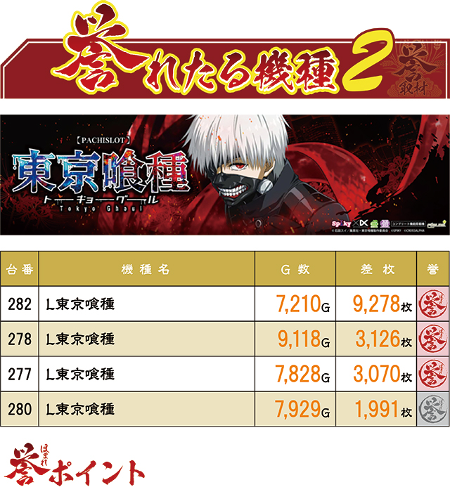 同じく前回も大活躍を見せた『L東京喰種』。前回を超える誉レコード数を生み出したのは、今回もシマ環境が優遇されていた証だろう。