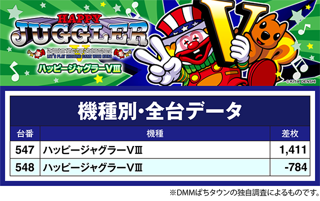 「ハッピージャグラーVⅢ」では、547番台が1,411pt。