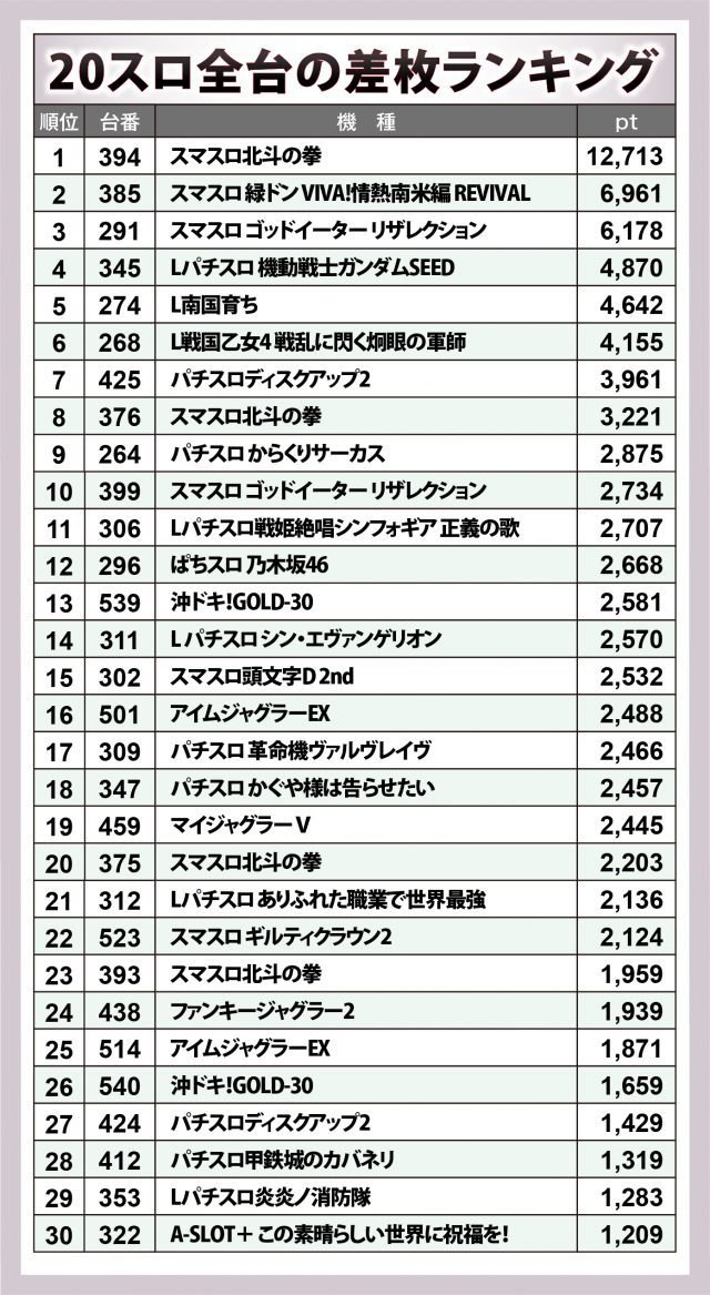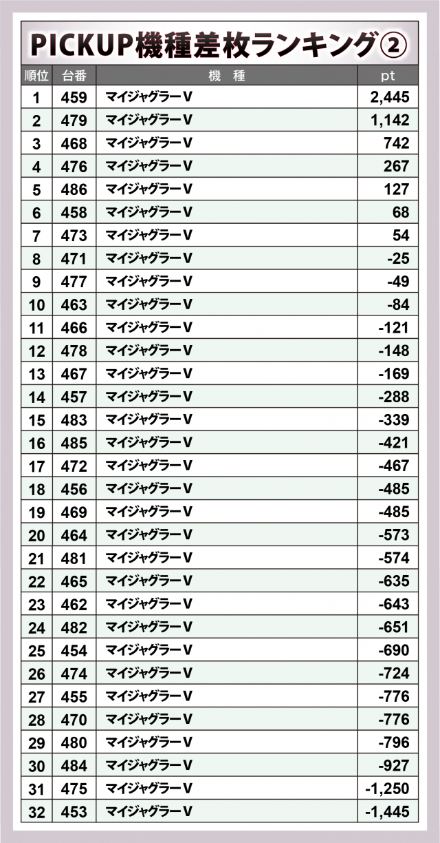 ※差枚数順に掲載しています。