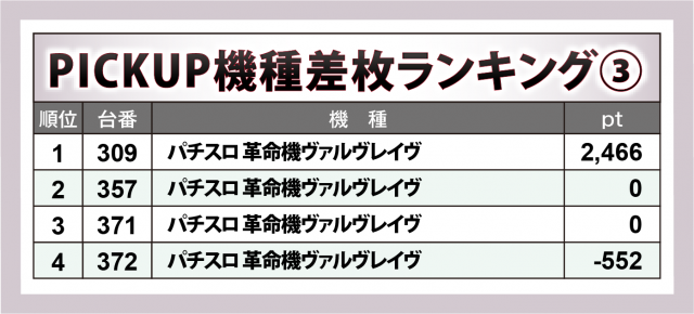 一方、『マイジャグラーⅤ』『パチスロ 革命機ヴァルヴレイヴ』には優秀台がカウントされたものの、勝率が高ければなお良かった。