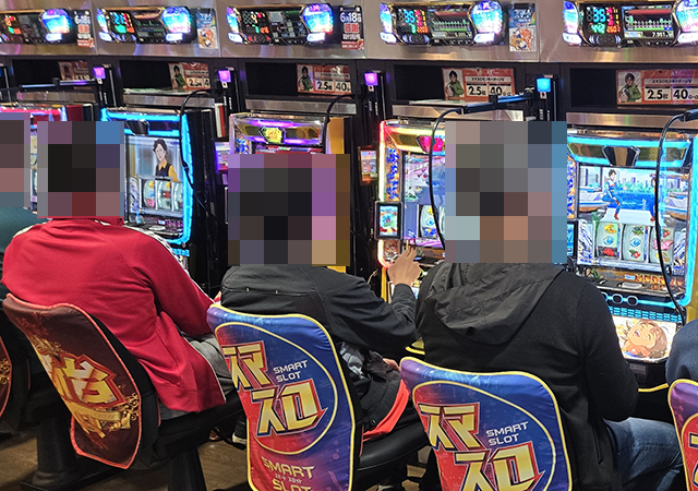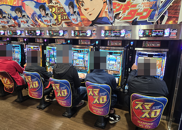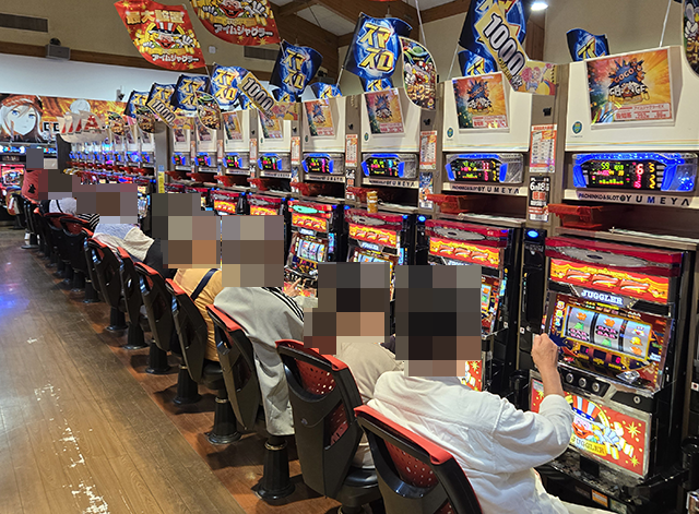 スマスロのにぎわいが大きく、随所に笑顔で遊技をおこなうプレイヤーの姿があった。
