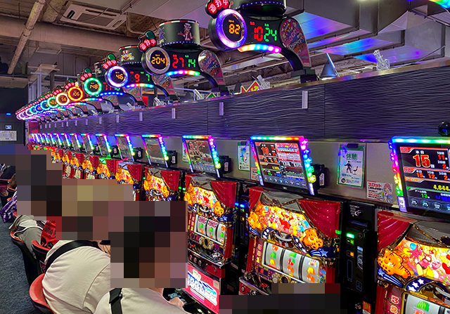 「アイムジャグラーEX」や「ゴーゴージャグラー3」にも遊技を満喫しているような姿があり、いくつもの台で華やかなシーンがみられた。