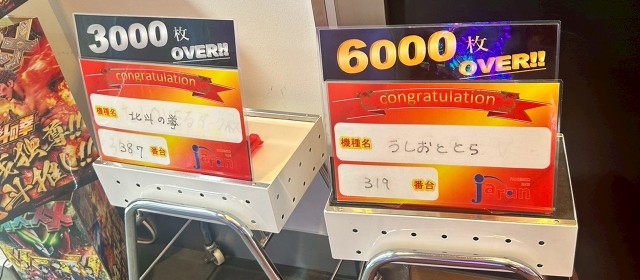 30台のうち28台が4桁プラスに成功。さらに、+2,000枚以上は16台、+3,000枚以上は8台、+4,000枚以上は4台、+5,000枚オーバーは1台と、優秀台は確かにカウントできていたが、またもや5桁プラスは見受けられなかったのは少し寂しかった。