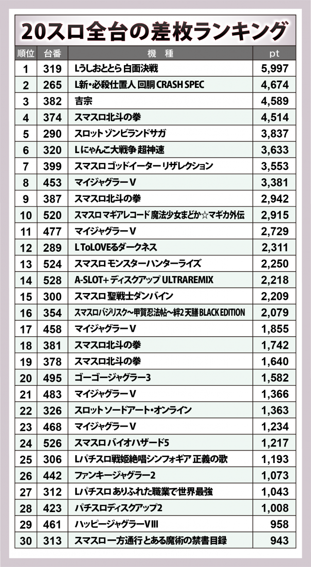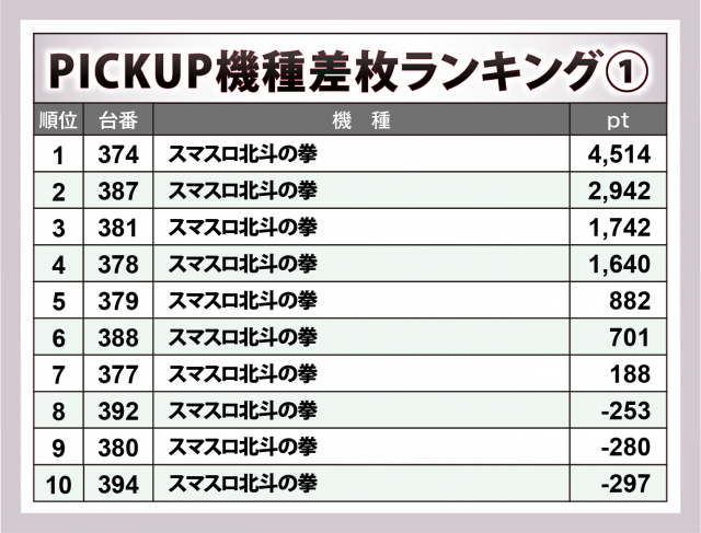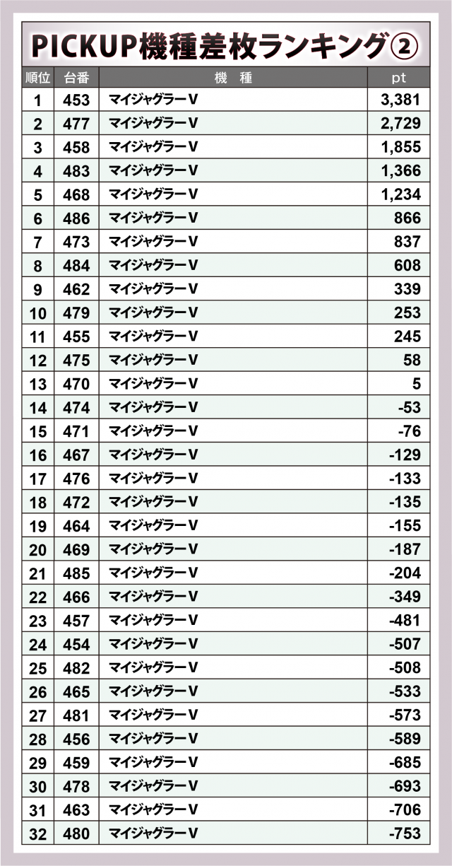 ※差枚数順に掲載しています。
