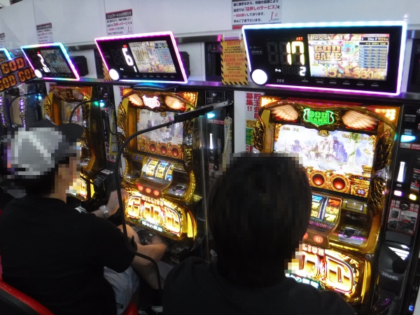 高稼働となっていた5円パチスロにおいても、プレイヤーたちが華麗なパフォーマンスを披露。「SLOTバジリスク〜甲賀忍法帖〜Ⅲ」を筆頭に、さまざまな機種で華やかなシーンを目にした。