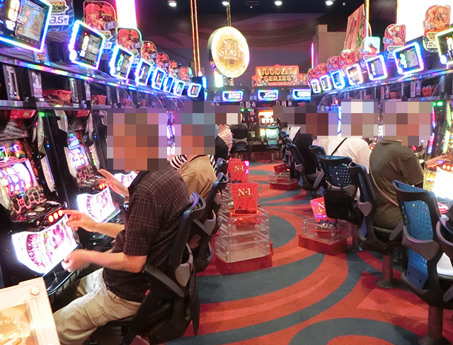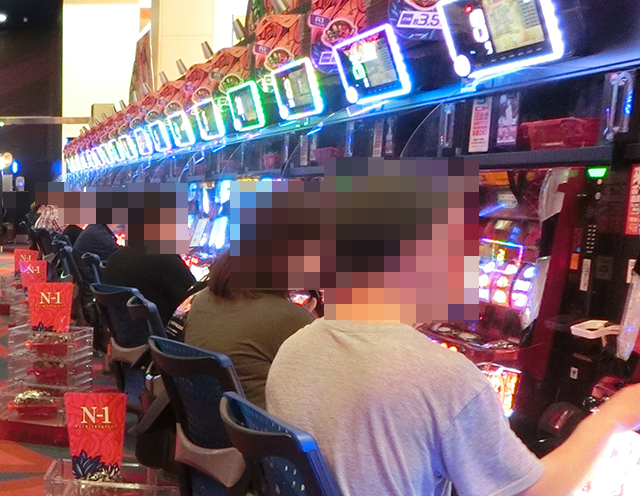 1箱以上の持ち玉で遊技するプレイヤーが各所におり、シマ内は華やかなシーンにあふれていた。