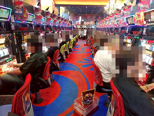 晴れやかな表情で遊技をおこなう姿が並び、シマ内は活況となっていた。