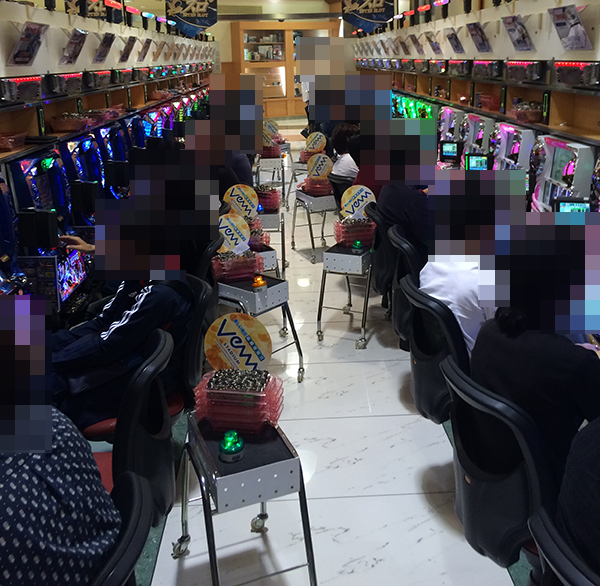 ほかにも「ニューキングハナハナ-30」や「ドラゴンハナハナ-30」をはじめとする沖スロも大盛況。心の底から遊技を堪能していると思われるプレイヤーばかりであった。