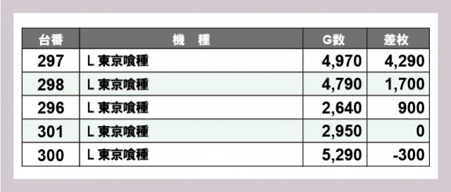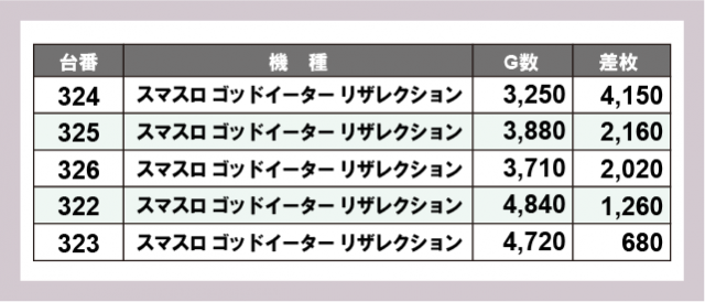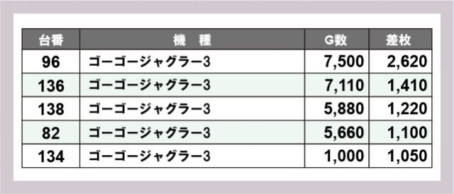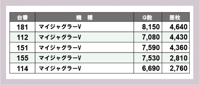 ※差枚数順に掲載しています