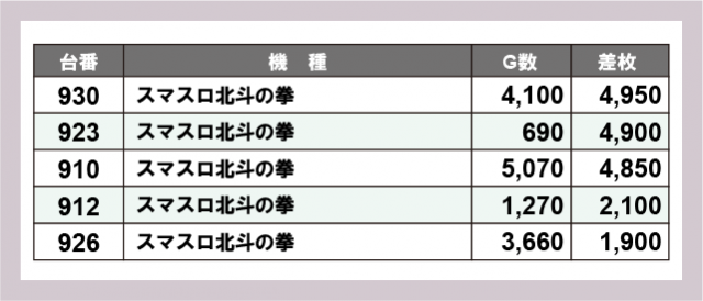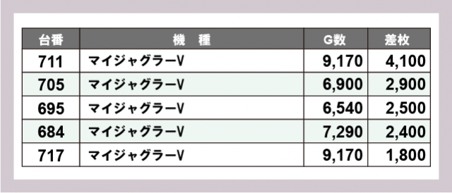 ※差枚数順に掲載しています