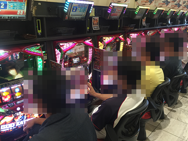 14時を過ぎる頃の20円パチスロをみると、朝から期待されていた「パチスロ ゴッドイーター」や「沖ドキ!」はフル稼働のまま。満足そうな表情で遊技するプレイヤーもあちこちにおり、大きく活気づいていた。