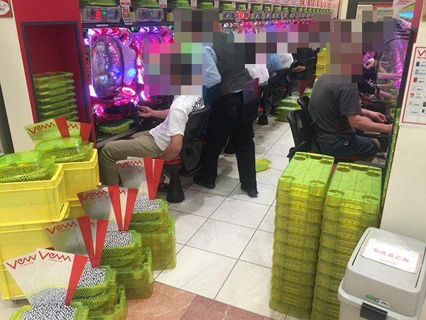 開店直後は20円パチスロに向かうプレイヤーが多く、「パチスロ ゴッドイーター」は早くも満席となっていた。