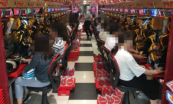 高稼働となっていた新台の「CR牙狼GOLDSTORM翔」と「CRぱちんこ必殺仕事人Ⅴ」でも、活気のあるシーンを確認。