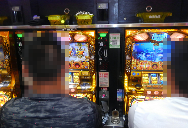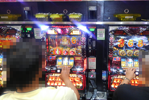 16時に近づいてきた頃、20円パチスロでは「ミリオンゴッド-神々の凱旋-」と「アナザーゴッドハーデス」に華やかな光景が広がっていた。