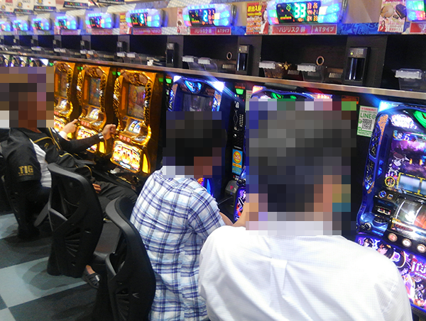 5円パチスロで遊技を楽しんでいるプレイヤーも笑顔。