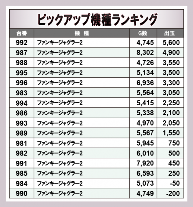 ※出玉数順に掲載しています