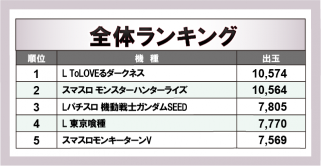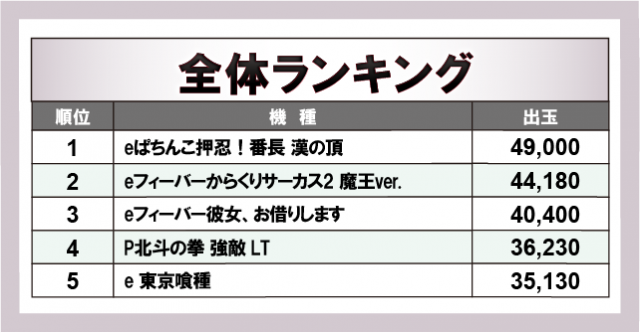 ※出玉数順に掲載しています