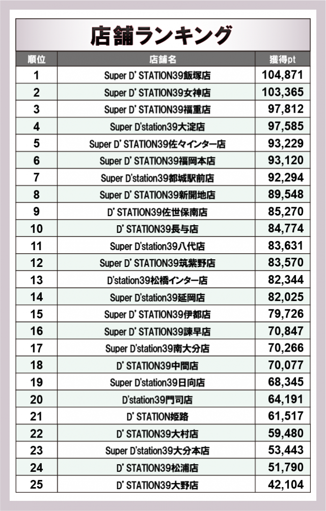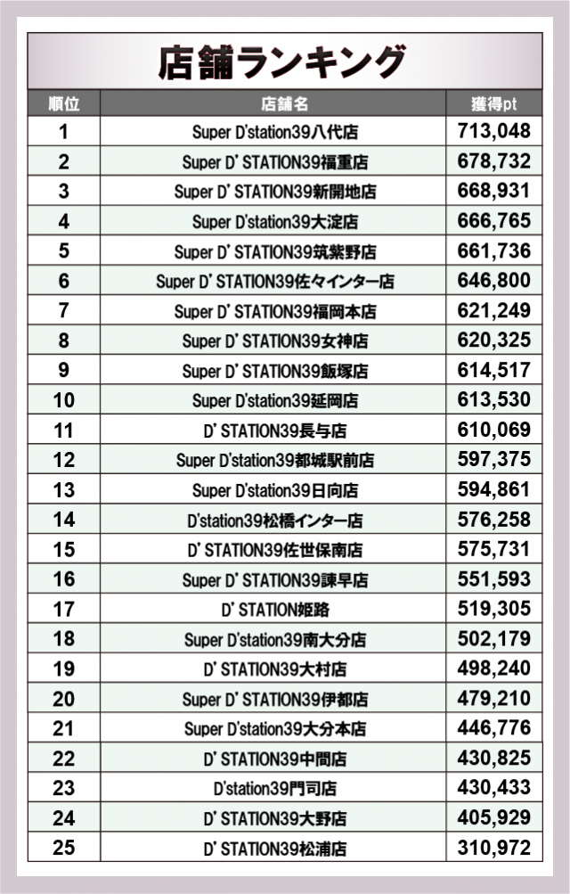 ※『獲得pt』は差玉ではなく独自算出によるポイント数です。