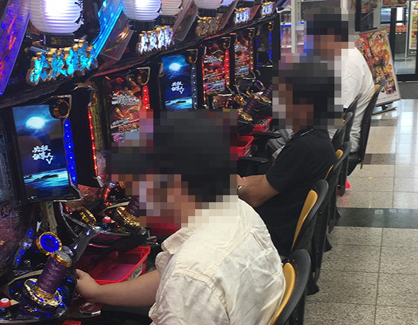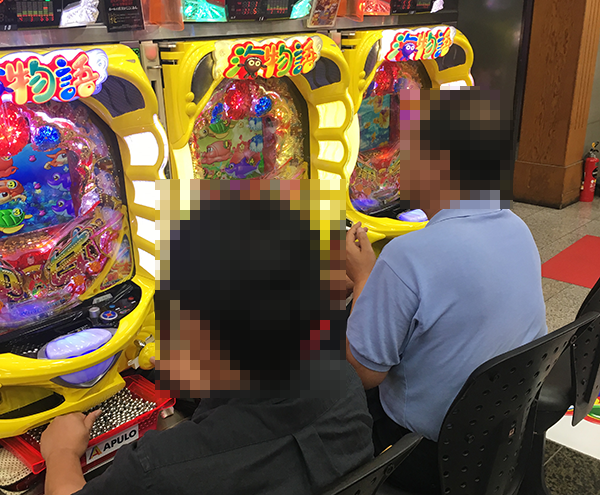 15時頃の4円パチンコでは、海物語シリーズが人気。プレイヤーたちは機種の特徴をうまく活かし、充実感を得られている様子であった。