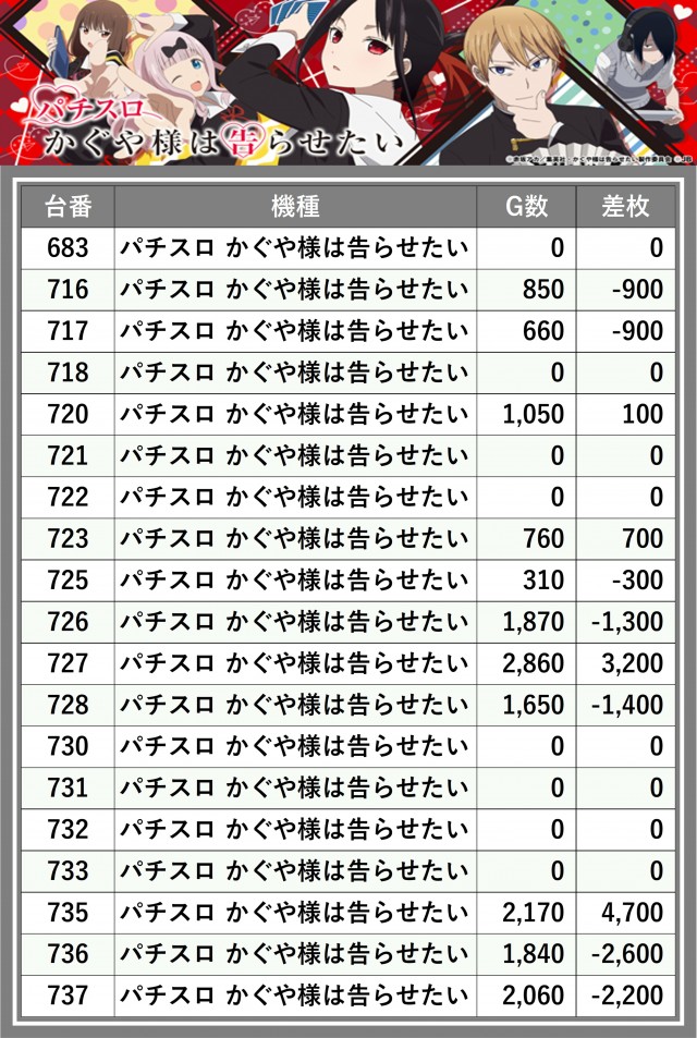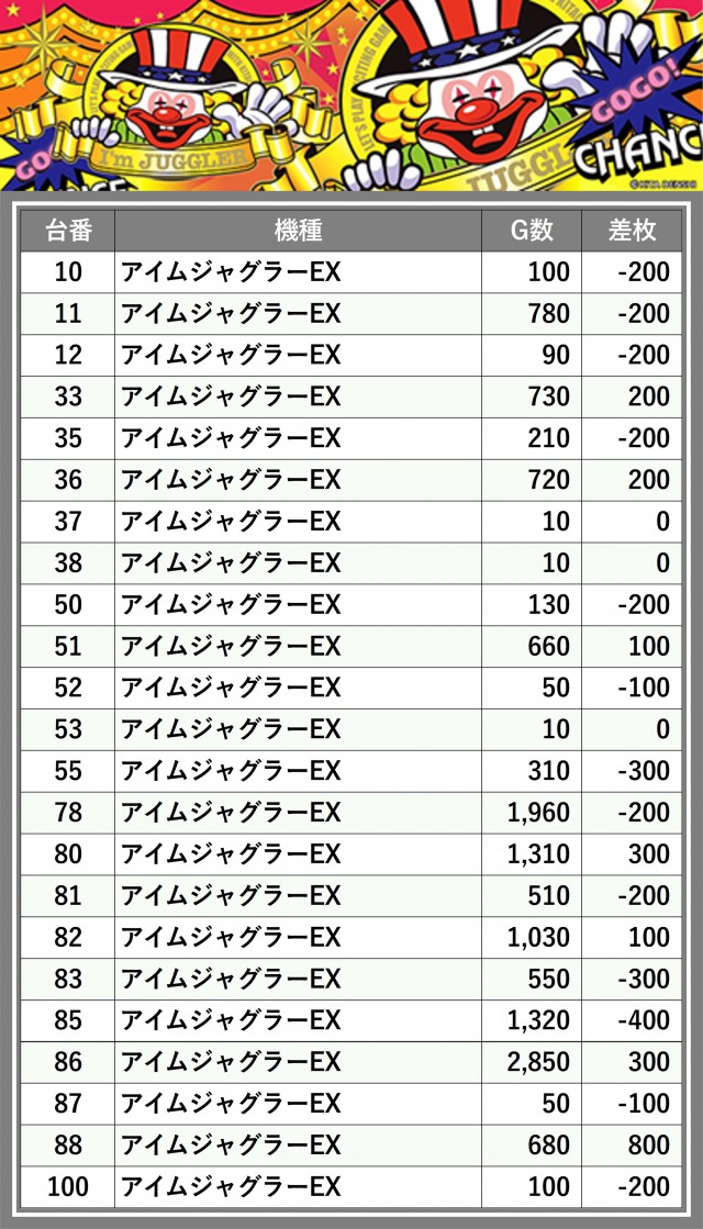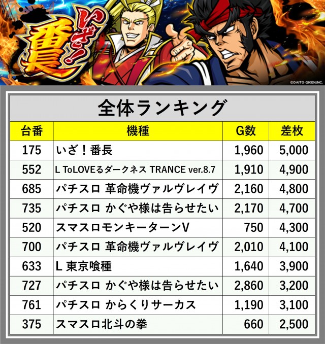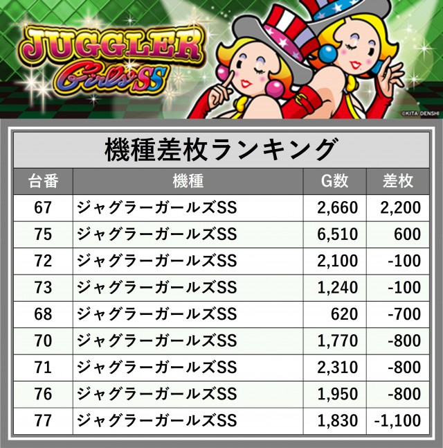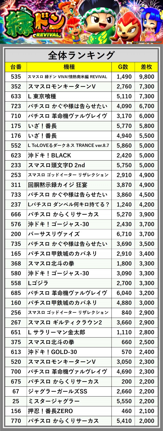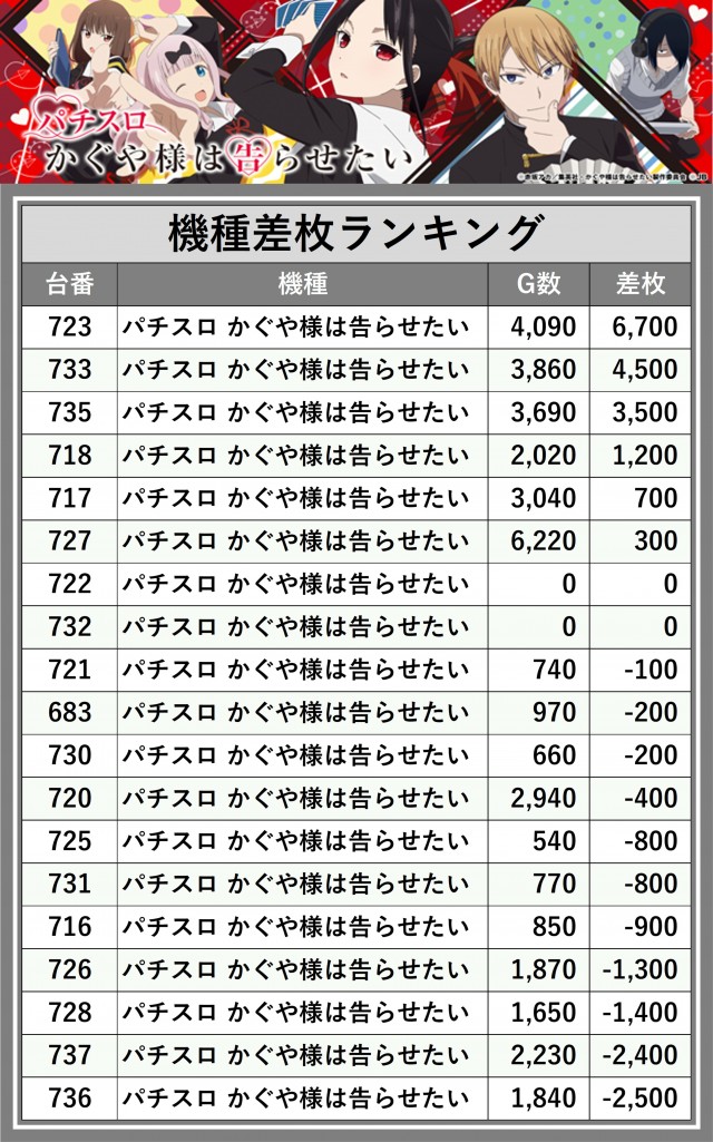 ※差枚数順に掲載しています